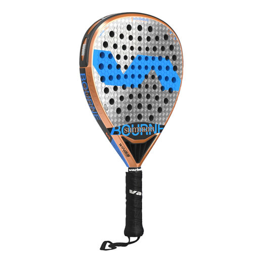 The Bourne SUMMUM W is a professional level racket in round format, designed for players looking for more power than control in their game. In order to guarantee maximum elasticity and resistance, it is composed of Hypersoft foam rubber, 7 Rhombus carbon fiber surfaces and carbon fiber reinforcement covered with a layer of titanium dioxide in the heart of the racket.At a technological level, this racket stands out for the following components:- Longer grip than usual to give the player a more comfortable grip for players using both hands.- Longer hitting surface.- 76 gradual holes pattern optimized to widen the racket's sweet spot.- Hexagonal shape roughness with more relief with to achieve a greater effect on topspin hits.- Wings Diffuser technology in the heart of the racekt with an aerodynamically improved diffuser that provides greater manageability to the racket.